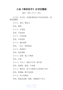 1小品《谁的扶手》小品《谁的扶手》台词完整版台词完整版演员:常亮古十八许沁女士们,先生们,欢迎您乘坐复兴号动车组列车,祝您旅途愉快古十八:哥们,喝水不常亮:谢谢古十八:不用谢常亮:不好意思古十八:不...