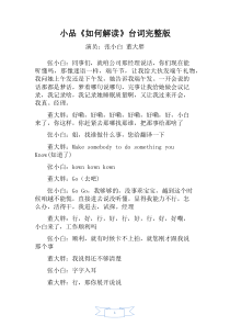 1小品《如何解读》小品《如何解读》台词完整版台词完整版演员:张小白董大胖张小白:同事们,就咱公司那经理说话,你们现在能听懂吗,那像迷语一样,端午节,让我给大伙发端午礼物,我问她上午发还是下午发,她告...
