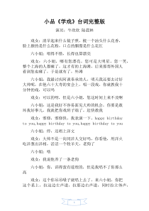 1小品《学戏》小品《学戏》台词完整版台词完整版演员:牛欣欣陆晨林戏女:清早起来什么镜子照,梳一个油头什么花香,脸上擦的是什么花粉,口点的胭脂是什么花红六小姐:唱得不错,长得也算漂亮戏女:六小姐,哪有...