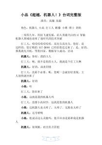 1小品《超越,机器人!》小品《超越,机器人!》台词完整版台词完整版演员:高越高超角色:机器人小高打工人酷滕小博博士奶奶二零四九年,科技飞速发展,而人类最关注的AI智能机器人领域也迎来了划时代的技术突...