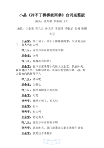 1小品《冷不丁梆梆就两拳》小品《冷不丁梆梆就两拳》台词完整版台词完整版演员:张兴朝李嘉诚王广角色:王金宝张八旦孙天宇李混球米歇尔胡博欧阳土豆王金宝:王金宝:终于到了,冷不丁梆梆就两拳,应该就是这了,...