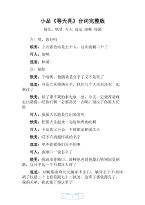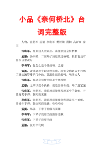 1小品《奈何桥北》小品《奈何桥北》台台词完整版词完整版人物:张将军孟婆李将军樊於期荆轲高渐离秦王张将军:张将军:原来这人死以后,真能到这奈何桥啊孟婆:孟婆:汤来喽,二位喝了汤赶紧过桥吧,投胎前还有什...