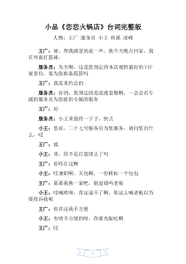 1小品《恋恋火锅店》小品《恋恋火锅店》台词完整版台词完整版人物:王广服务员小王梓溪凌峰王广:王广:姐,帮我跟爸妈说一声,我今天晚点回家,我在外面打篮球,服务员:服务员:先生啊,这是您预定的本店视野最...