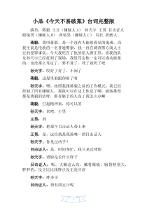 1小品《今天不易破案》小品《今天不易破案》台词完整版台词完整版演员:蒋毅土豆(嫌疑人A)孙天宇王男目击证人眼镜男(嫌疑人B)西装男(嫌疑人C)局长折磨人蒋毅:蒋毅:我叫蒋毅,是一个没有人能够看见的鬼...