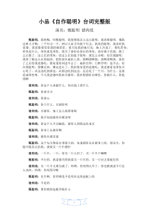 1小品《自作聪明》台小品《自作聪明》台词完整版词完整版演员:甄聪明猪肉佬甄聪明:甄聪明:我姓甄,叫甄聪明,我想想我怎么这么聪明,我真够聪明,像我这种人才啊,三千年出一个,所以人家才叫我千年虫,我真的...