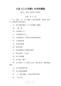 1小品《三小无猜》小品《三小无猜》台词完整版台词完整版演员:李征陈宣佑管重昊人物:甲乙丙甲:这是一个,关于我们三兄弟的故事,我们仨是从小一起玩到大的好朋友乙:别人都说我们三个人长得像三胞胎丙:一模一...