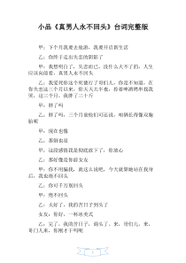 1小品《真男人永不回头》小品《真男人永不回头》台词完整版台词完整版甲:下个月我要去旅游,我要开启新生活乙:你终于走出失恋的阴影了甲:我想明白了,失恋而已,没什么大不了的,人生应该向前看,真男人永不回...