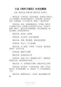 1小品《两杆大烟花》台词完整版小品《两杆大烟花》台词完整版人物:烟花卖家炸弹卖家烟花买家皇家特工烟花卖家:买家您好,您是知道的,伦敦的公共场合,它不让放烟花,所以我才偷着卖人,你切记啊,来交易的时候...