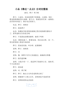 1小品《靠近一点点》小品《靠近一点点》台词完整版台词完整版演员:烨子邓子晴烨子:大家好,欢迎来到烨子的频道,之前呢,你们都说我视频拍得太幼稚,那今天,我就给你们来一成熟的。改革春风吹进门,谁打电话真...