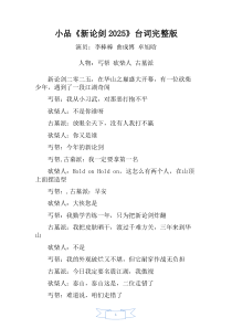 1小品《新论剑小品《新论剑20252025》》台词完整版台词完整版演员:李棒棒曲成博卓旭晗人物:丐帮砍柴人古墓派新论剑二零二五,在华山之巅盛大开幕,有一位砍柴少年,遇到了一段江湖奇闻丐帮:我从小习武...