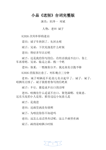 1小品《那个座位》小品《那个座位》台词完整版台词完整版演员:孙超许沁人物:乘务员男乘客乘务员:就这样分手了,座位空了,爱情走了各机组人员请注意,乘客马上登机,请乘务员进行客舱安全检查,请进行客舱安全...